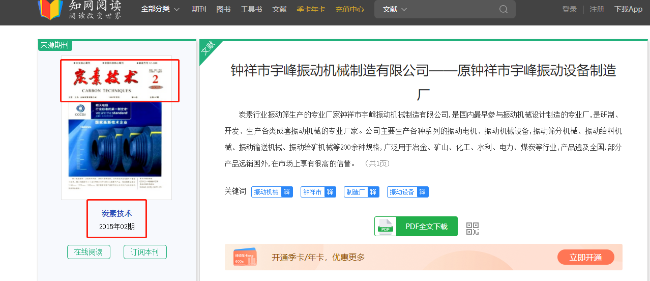 鐘祥市宇峰振動(dòng)機械制造有限公司榮登碳素技術(shù)